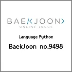 이번 포스팅은 백준 알고리즘 사이트의 9498번 시험 성적 문제를 Python 언어로 코딩해보도록 하겠습니다. 아래 url로 접속하시면 문제를 볼 수 있습니다. https://www.acmicpc.net/problem/9498 이번 포스팅부터는 백준 알고리즘 사이트의 단계별로 풀어보기 4번째 단계인 if문 사용해보기를 풀도록 하겠습니다. 이 문제의 경우 if문 사용의 가장 기초 단계로 점수를 입력 받고, 입력 받은 값의 점수에 해당되는 등급을 출력하는 문제입니다. 1234567891011inp = int(input())if inp >= 90 and inp = 80 and inp = 70 and inp = 60 and inp