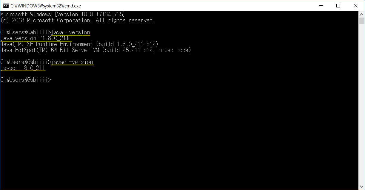 cmd에서의 출력이 위 사진과 동일하다면 Java SE 1.8.0 버전 설치를 성공적으로 마친 것입니다.