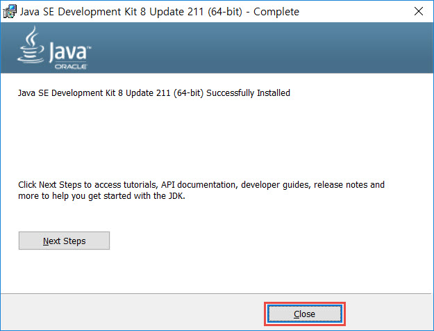 Java SE가 정상적으로 설치되었다는 창이 뜨면 Java SE의 설치는 완료 된 것입니다.