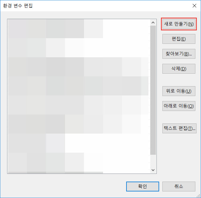 Path 변수 편집창에서 새로 만들기를 선택해주세요.
