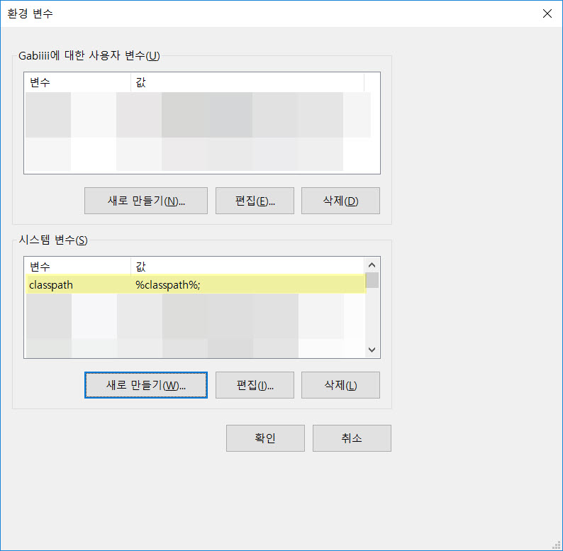시스템 변수에 classpath라는 변수가 추가된 것을 확인할 수 있습니다.