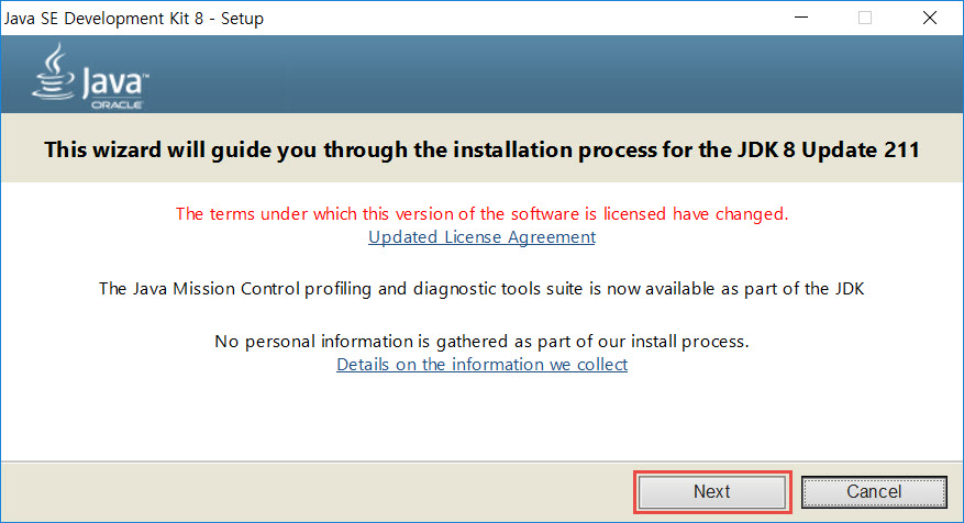 (정확한 명칭은 Java SE Development Kit 8로 JDK와 JRE를 포함하여 설치를 진행합니다.)