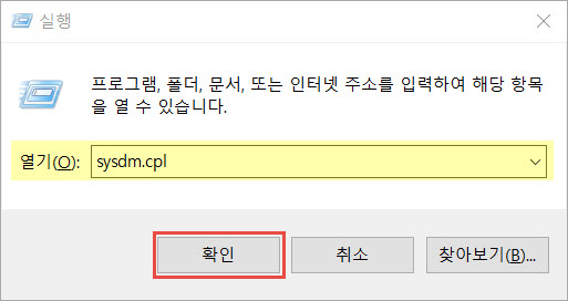 환경변수 편집을 위해 Ctrl+R 키를 눌러 실행창을 띄워주시고, stsdm.cpl 명령어를 입력해주세요.