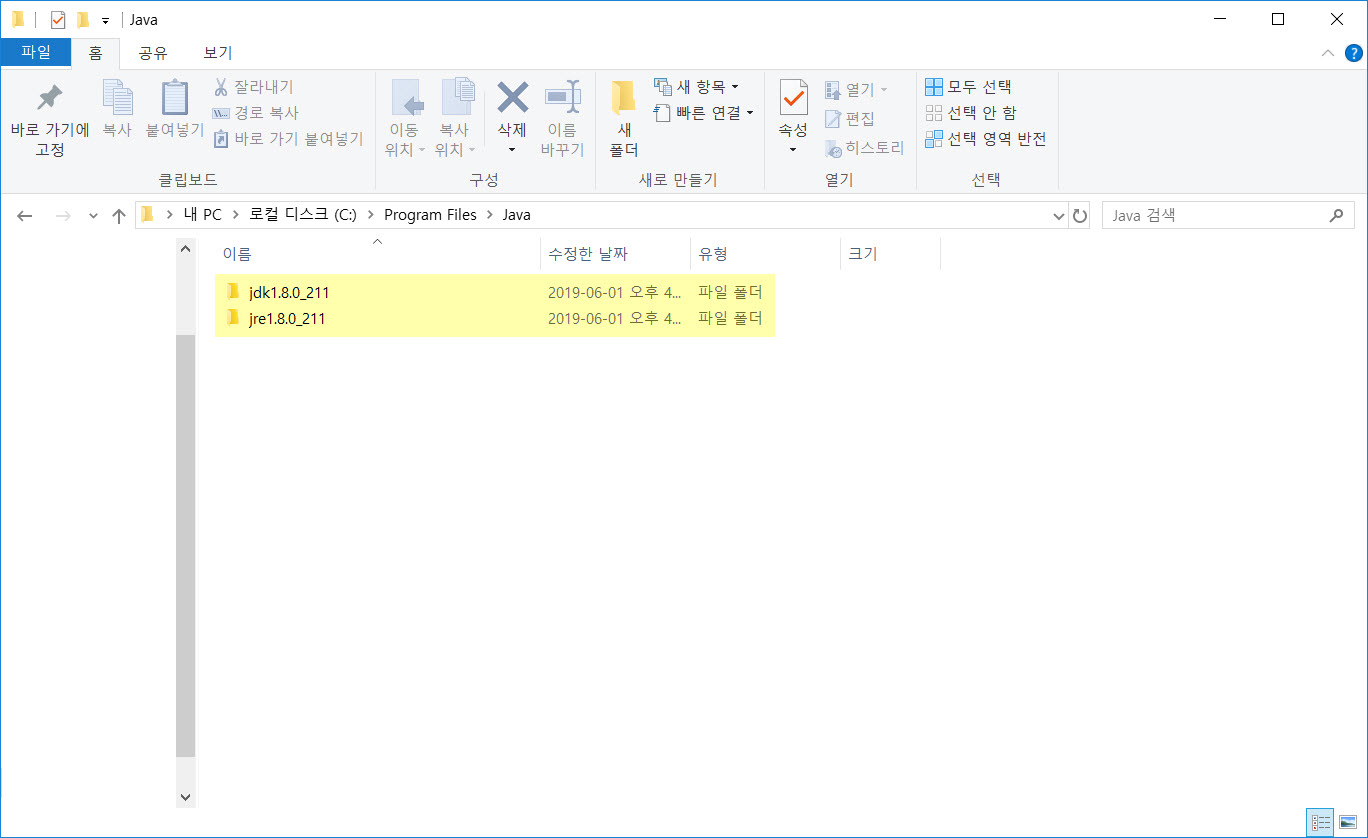 우선 Java SE가 설치된 경로에 jdk와 jre 모두 잘 설치 되었는지 확인해주시고, 경로를 확인해주세요. 해당 경로를 통해 환경 변수를 설정해야하기에 복사해두시는 것을 추천드립니다.